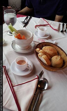 麵包有分兩種,除了常見的大蒜麵包,就是軟式法式麵包,有奶油可以搭配食用;