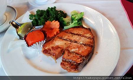在價格考量下,我點了挪威鮮鮭魚排,份量大得讓我覺得其實還蠻值得的,